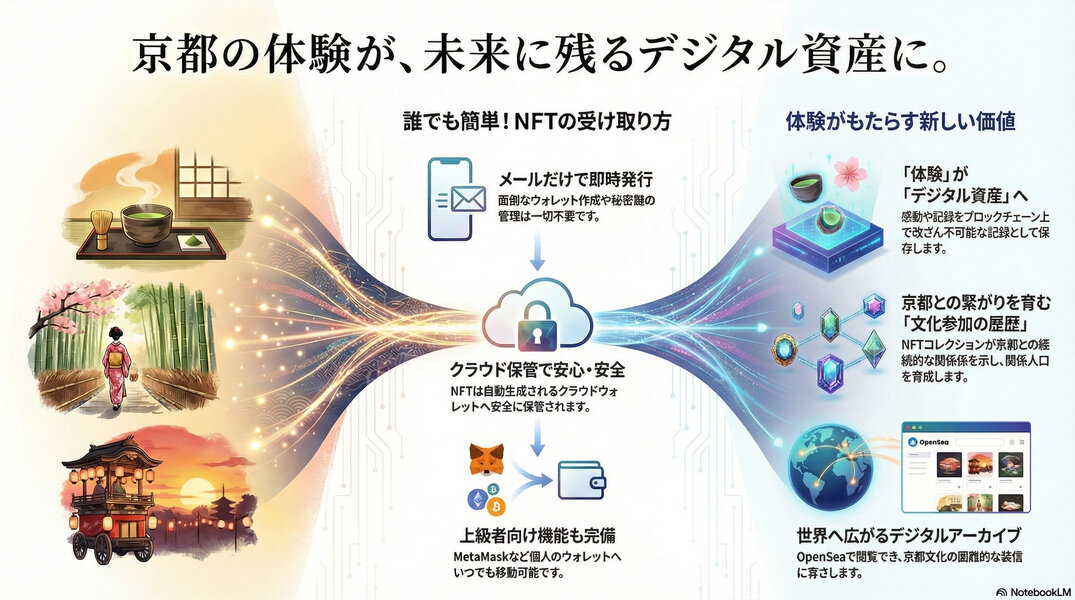KryptoKyotoのシステムは、**「誰でも簡単な取得体験」と「本格的なブロックチェーン活用」**を両立させた革新的なインフラです。