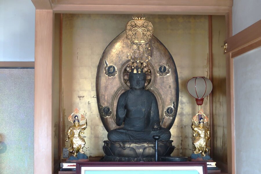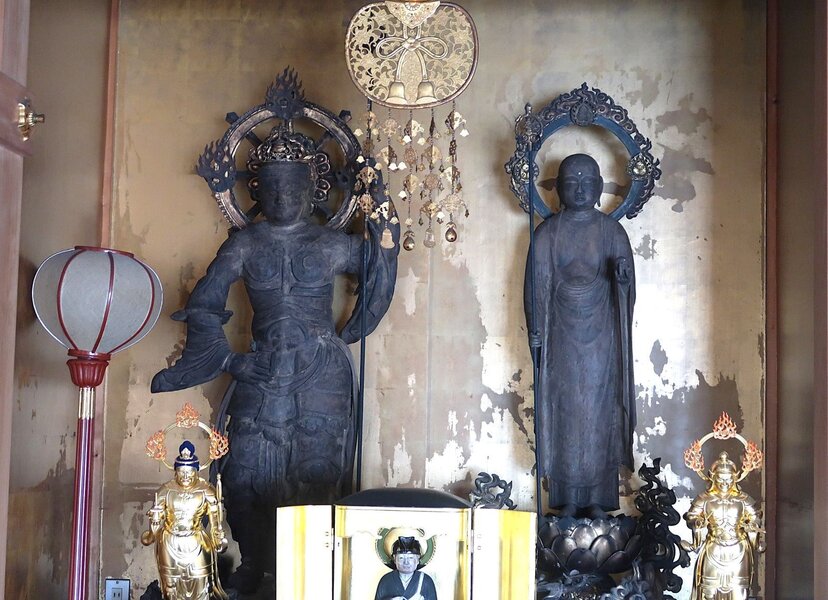 平安時代の定朝様の作を思わせる。創建当時の金箔が黒く変色している。