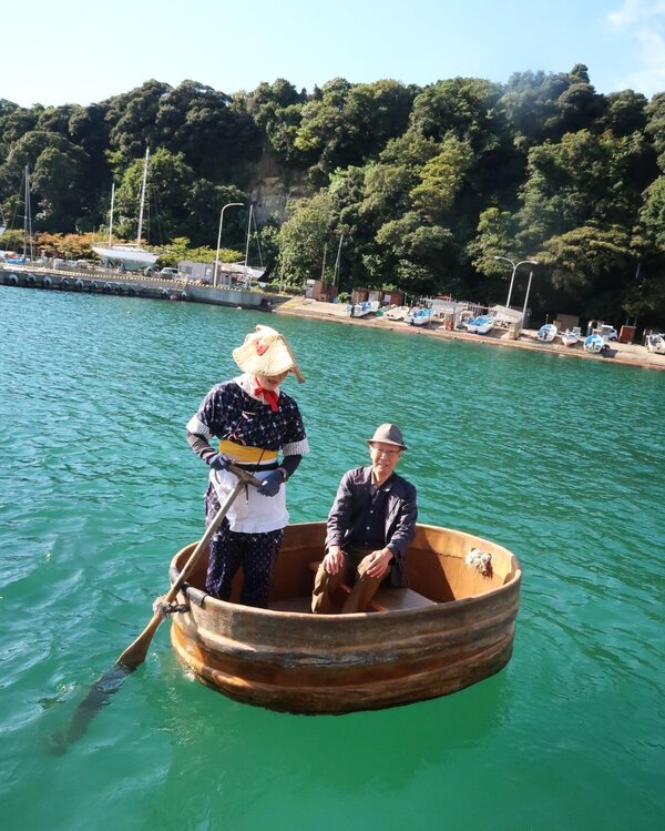 佐渡島の旅で、名物の「たらい舟」に乗船しました。ゆらゆらと揺れる舟の上には、菅笠に着物姿の女船頭さん、そして美しい景観に心地よく酔うばかりでした。