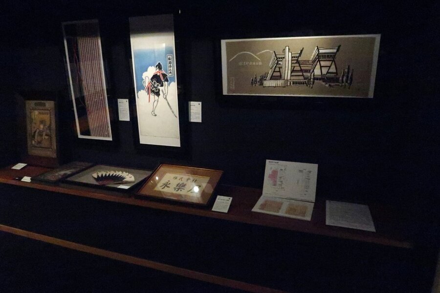 1階では各時代の手ぬぐい作品約30点を展示、2階は当館の資料などを紹介している。
